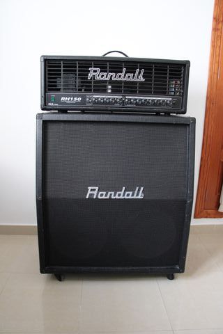Amplificador Randall RG150W con pantalla 4x12. - Cabezal hibrído con valvula en previo y transistores - Canal "Clean" y "Overdrive" - Pantalla Randall con conos Celestion - Regleta instalada en parte trasera para conectar pedales y LED rojos del cabezal - Utilizado dos veces en directo microfonado. EL amplificador funciona perfectamente, siempre cuidado y no forzado. Lleva dos raspones en el lateral del anterior propietario unicamente esteticos. Se puede ver y probar. Precio algo negociable. Se puede estudiar envios.