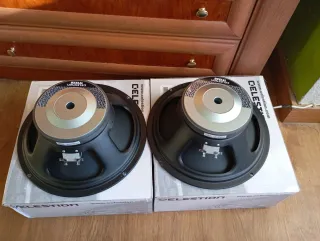 Se venden dos altavoces Celestion Vintage 30 fabricados en el Reino Unido. Ideales para proyectos de reparación o para quien busque un sonido clásico. - Modelo: G12 Vintage 30 - Impedancia: 16 ohms - Fabricación: UK ¿Qué le pasan? No lo sé la verdad. Lleve mi Pantalla Orange a arreglar y el técnico me dijo que no funcionaban pero él no sabía arreglarlos, me ofreció ponerme unos nuevos y me devolvió estos. He pensado ponerlos en venta por algo simbólico para lo que suelen valer por si alguien manitas quiere arreglarlos.