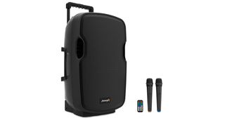 COLUMNA ACTIVA EK AUDIO PORTATIL 15 Pulgadas con BATERIA RECARGABLE Reproductor MP3 por puerto USB y SD Card.Conexión Bluetooth.Con mando a distancia.Potencia RMS/Pico: 80W / 320 W.Columna activa de dos vías.Altavoz 15'', Tweeter 1".Dos micrófonos inalámbricos incluidos.Dos canales. Line entrada/salida.Ecualizador gráfico.Volumen: Canal, MP3 y Master.Columna con ruedas.Medidas: 485 x 750 x 445 mm.Peso: 17,2 Kgs.