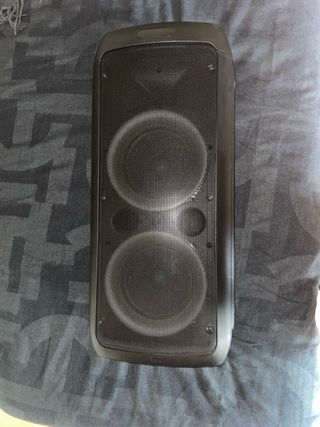 Altavoz Bluetooth de gran tamaño con una potencia de 50W. Ofrece una iluminación LED vibrante que cambia de color entre tonos azules y púrpuras. - Potencia de 50W. - Iluminación LED dinámica. 50€ no negocio