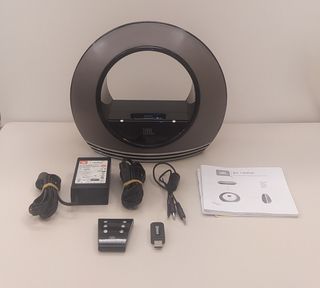 ALTAVOZ JBL RADIAL NEGRO/PLATA PARA IPODS. Con marcas y roces del uso pero bien conservado en general, el conector del ipod tiene una esquina rota pero no influye a la hora de conectar los ipods. Posibilidad de conectar cualquier equipo por entrada auxiliar. Sonido impecable, se ha sustituido el subwoofer. Incluye un adaptador bluetooth generico sin alimentador, mas los cables, el manual, mando a distancia y alimentador original. Hazme cualquier consulta que desees antes de comprar, ya que no admito devoluciones. Se realizan envios por wallapop.