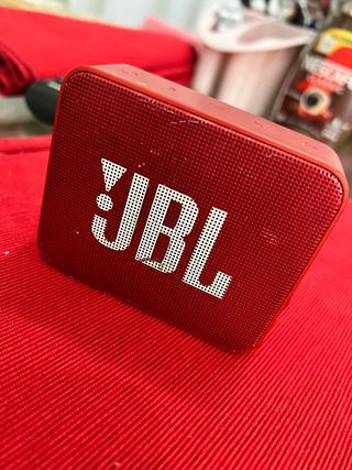 Altavoz portátil JBL GO2 en color rojo. Compacto y fácil de llevar a cualquier parte. - Diseño resistente al agua. - Conexión Bluetooth. - Sonido nítido y potente.