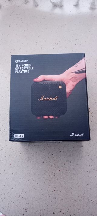 Altavoz portátil Marshall Willen con conexión Bluetooth. Ofrece más de 15 horas de reproducción. - Diseño compacto y resistente. - Sonido potente característico de Marshall. - nuevo sin abrir