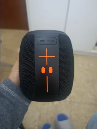 Vendo altavoz Bluetooth portátil en color negro con detalles en azul. Es muy ligero y compacto (unos 16 cm de largo), ideal para llevar a cualquier parte, usar en el escritorio o en la cocina. Lo mejor que tiene es la variedad de conexiones; no solo funciona por Bluetooth, sino que puedes meterle música de mil formas. Características principales: Conexiones: Bluetooth, puerto USB para pendrive, ranura para tarjeta TF (MicroSD) y entrada AUX (jack 3.5mm). Controles superiores: Botones para pasar canciones, pausar/contestar llamadas y control de volumen. Carga: Se carga mediante cable Micro-USB (DC 5V). Muy buen estado