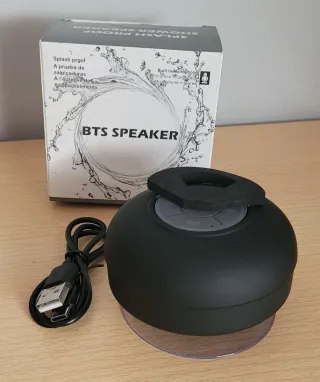 Altavoz Bluetooth portátil, ideal para usar en la ducha. Resistente a salpicaduras. - Conectividad Bluetooth. - Micrófono incorporado para llamadas. - Incluye cable de carga USB.