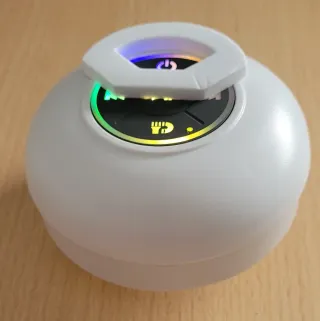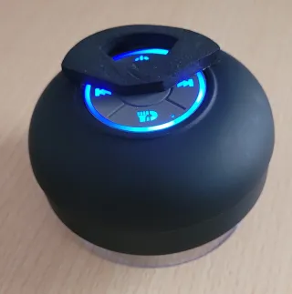 Altavoz portátil con ventosa para adherir a superficies lisas. - Diseño redondo y compacto. - Botones de control integrados. - Conectividad Bluetooth.