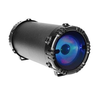 Parlante portátil con un diseño cilíndrico y acabado en malla. Incorpora luces LED que cambian de color. - Diseño cilíndrico. - Malla protectora. - Luces LED integradas.