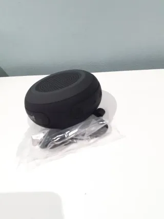 Altavoz portátil SPC Splash con conectividad Bluetooth, nuevo a estrenar, fue un regalo. - Diseño redondo y compacto. - Resistente a salpicaduras (IPX5). - Función de radio FM integrada. - Botones de control accesibles en la parte frontal.