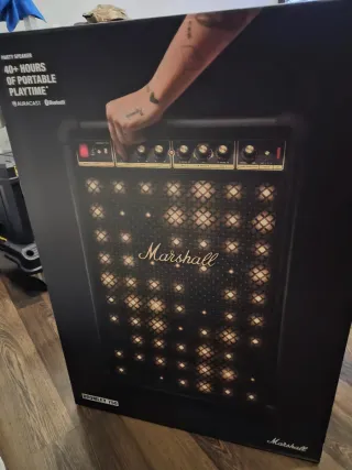 Altavoz de fiesta Marshall Bromley 750. - Más de 40 horas de reproducción portátil. - Compatible con Auracast y Bluetooth.