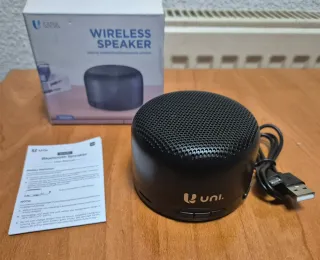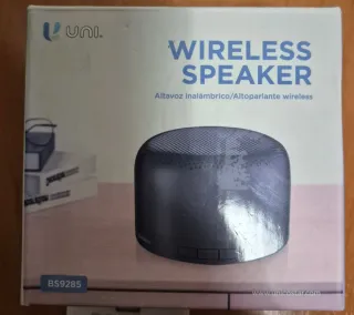 Altavoz inalámbrico portátil. - Modelo BS9285. - Diseño compacto y moderno.co El artículo en la imagen es un altavoz inalámbrico modelo BS9285 de la marca Uuni. Es un dispositivo transductor electroacústico que convierte señales eléctricas en ondas sonoras. Utiliza tecnología inalámbrica, probablemente Bluetooth, para la conexión. Es compacto y portátil, diseñado para ser fácil de transportar. La potencia típica de altavoces compactos similares suele rondar los 3W o 5W.