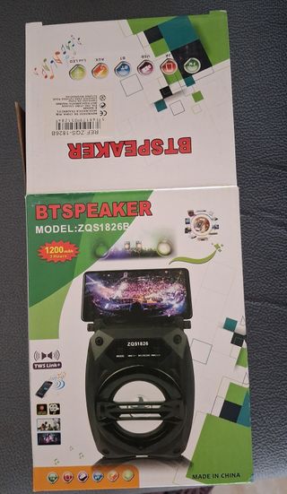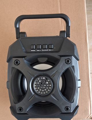 Altavoz portátil con conexión inalámbrica Bluetooth. Ideal para llevar tu música a todas partes. - Alcance de hasta 10 metros. - Batería de 1500 mAh para 3 horas de reproducción. - Diseño compacto y ligero. - Compatible con dispositivos móviles. -25 Watios - medidas 20 x 14 x 12 cm