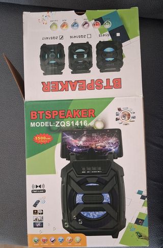 Altavoz portátil con conexión Bluetooth y luces LED. - Modelo: ZQS1416 - Batería: 1500mAh (3 horas de duración) - Funciones: Radio, Tarjeta TF, USB, BT, AUX, LED - TWS Link+