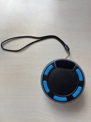 Altavoz portátil con ventosa, ideal para usar en la ducha o en cualquier lugar. - Resistente al agua (waterproof). - Conectividad Bluetooth para móvil. - Diseño compacto y moderno.