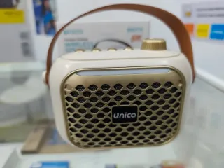 Altavoz portátil Unico con un diseño retro y elegante. Ideal para llevar tu música a todas partes. - Potencia de 5W. - Batería recargable de 800mAh. - Conexión Bluetooth. - Función de luces RGB. - Incluye cable de carga y manual de usuario. Nuevo.