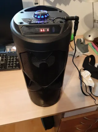 Se vende altavoz portátil JHW-V315. En perfecto estado, ideal para llevar contigo a cualquier parte. - Dispone de luces LED de colores, se pueden desactivar. - Es inalámbrico, para que puedas llevarlo donde quieras, a través de conexion bluetooth - Incluye dos cables, el de carga (USB a MICRO USB) y otro para com conexión Jack - También tiene otras entradas como USB para poner un pendrive o incluso una tarjeta de memoria Precio negociable