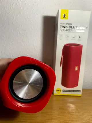 Altavoz portátil TWS Bluetooth NF4064 en color rojo. - Modelo NF4064. - Bluetooth V5.3. - Batería de 1200mAh. - Soporta tarjeta U disk. - Soporta USB. - Materiales a prueba de agua. - Potencia 3W*2. - Tiempo de trabajo: 2 horas. - Soporta llamadas manos libres.