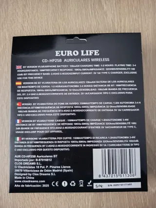 Auriculares inalámbricos EURO LIFE con conexión Bluetooth 5.0. Diseño moderno y cómodo. - Conexión inalámbrica. - Ideal para escuchar música. - Permite realizar llamadas. - Batería recargable.