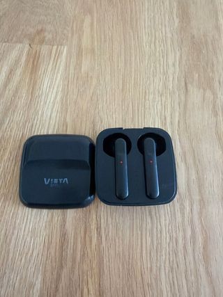 Auriculares inalámbricos Vieta Pro en color negro. usados. - Diseño moderno y elegante. - Incluye estuche de carga. - incluye cable de carga - funcionan bien en general - usb C