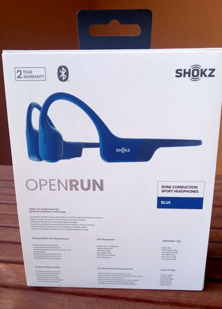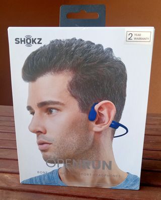 Auriculares deportivos Shokz OpenRun con tecnología de conducción ósea. Diseñados para el deporte y el uso diario. PVP: 139,99€ Estado: Como nuevos, usados 2 veces. Color: Azul - Diseño ligero y ergonómico. - Conexión Bluetooth inalámbrica. - Resistentes al sudor. - Conexión USB-C. - Diseño Open-Ear. - Tecnologia de conduccion osea. - 8 horas de musica y llamada. - IP67 a prueba de agua y sudor (no para nadar). - Estructura de titanio para un ajuste óptimo.