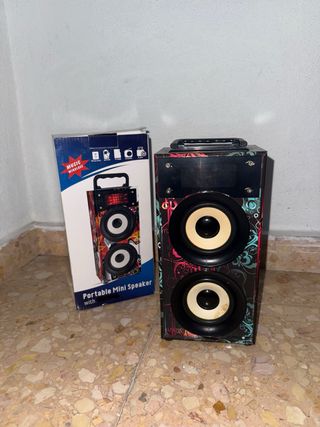 Altavoz portátil con múltiples funciones para disfrutar de tu música. - Conexión Bluetooth. - Puertos USB y para tarjeta SD. - Sintonizador de radio FM integrado. - Diseño moderno en color negro y rojo. Es nueva a estrenar sin usar los compro hace dos meses para ganarme una pequeña comisión abstenerse regateadores esto vale 40 50 euros en una tienda lo dejo en 20€ no puedo bajar nada.