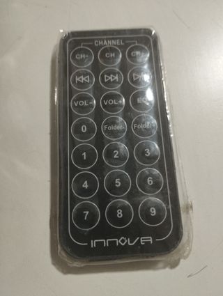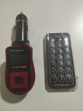 Reproductor MP3 INNOVA para coche, en buen estado. Incluye mando a distancia. - Reproduce archivos MP3 y WMA. - Conexión USB. - Radio FM. - Incluye cargador para coche.