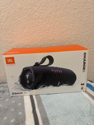 Altavoz portátil JBL Charge 6, completamente nuevo y en su caja original. 🔥 Sonido potente con graves profundos, calidad JBL 🔋 Hasta 28 horas de batería 📶 Bluetooth 5.4 (conexión rápida y estable) 💧 Resistente al agua y al polvo, ideal para playa, piscina o exterior 🎒 Diseño portátil con correa para llevarlo cómodamente - Color negro con detalles en rojo. - Conectividad Bluetooth v5.4. - Hasta 28 horas de reproducción.