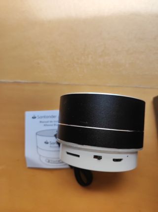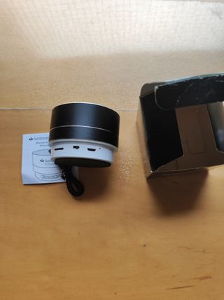 Altavoz portátil con conectividad Bluetooth. Incluye una correa para facilitar su transporte. - Diseño cilíndrico. - Rejilla protectora. - Botones de control de volumen. -En muy buen estado -Pocas veces usado
