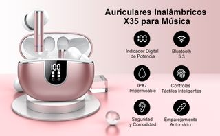 Auriculares Inalámbricos Ultraligeros 5.3 con Micrófono, Estéreo De Bajo Profundo, Tiempo De Reproducción De 50 Horas, Pantalla LED, IPX5 Impermeable & Control Táctil. 🎁DE REGALO SI COMPRAS ALGO DE 50€ O MÁS DE MI PERFIL🎁
