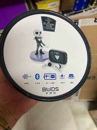 Auriculares inalámbricos con un diseño especial inspirado en Pesadilla antes de Navidad. - Incluye figura de Jack Skellington. - Estuche de carga con diseño temático. - Conectividad Bluetooth V 5.3. - Resistencia al agua IPX4. - Autonomía de 5 horas + 20 horas con el estuche.
