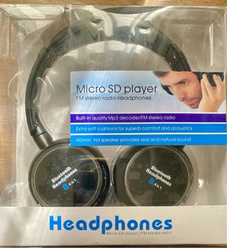 Auriculares inalámbricos de la marca EURO LIFE. - Conexión inalámbrica. - Ideal para música. - Permite realizar llamadas. - Batería recargable. -Bluethoot y FM Sin estrenar, desprecintado para comprobar que funciona.