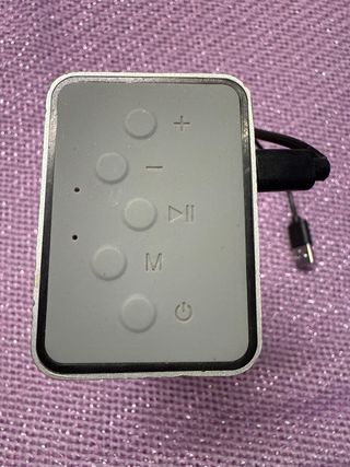 Altavoz portátil metálico, tiene para poner tarjeta microSD Está muy bien conservado a pesar de haberlo usado, está como nuevo
