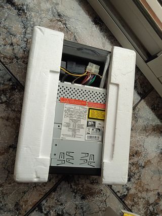 A estrenar, en su caja. No cambio ni rebajo. Todo en uno. Dos salidas potencia 2x80W RMS. Dos entradas RCA traseras para DVD y aux y una salida. Bluetooth. USB y ranura SD reproductores MP3. Radio FM con antena telescópica. Cuatro entradas mic para karaoke con control de volumen. Equalizador diez bandas. Display digital led rojo. Mando a distancia, instrucciones y caja. Toma 240V española y entrada 12V para coche. Recogida o envío wallapop.