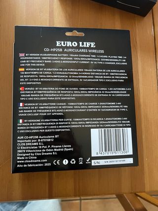 Auriculares inalámbricos de la marca Euro Life con tecnología Bluetooth 5.0. - Conexión inalámbrica. - Ideal para escuchar música. - Permite realizar llamadas. - Batería recargable.