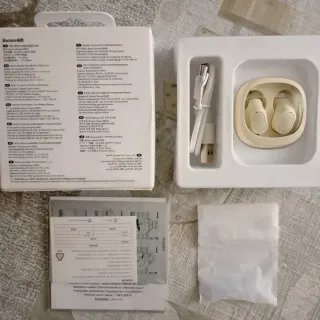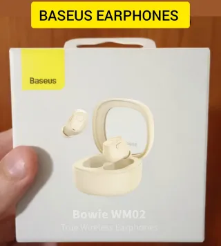Auriculares inalámbricos Baseus Bowie WM02: - 3,5 g - True Wireless 5.3 - Bluetooth 5.2 - Cancelación de Ruido Híbrida 43dB - 25 h. de Batería de larga duración - Color blanco marfil - Incluye 6 pares de Almohadillas, Cable USB y Manual de instrucciones Como nuevos, muy buena calidad. Prácticamente sin uso, solo se comprobó su funcionamiento