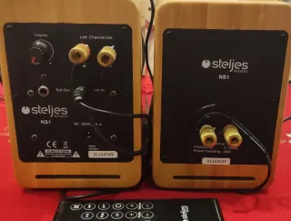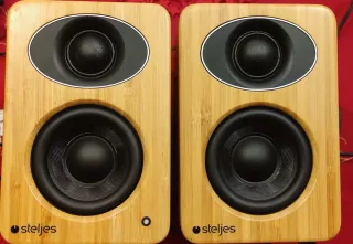 Altavoces activos Steljes Audio NS1 con acabado en bambú. Estos altavoces ofrecen un diseño elegante y natural. Salida de 45W RMS Conectividad múltiple. Analógico / Digital / Bluetooth Entrada USB Control remoto