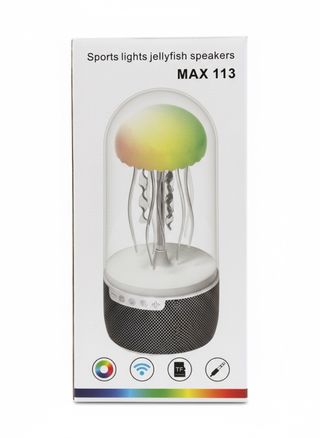 Altavoz inalámbrico "Sports lights jellyfish" modelo MAX 113. Destaca por su diseño único con efecto de medusa y luces LED de colores. Características principales: • Potencia: 6W de sonido nítido. • Batería: 1500mAh (carga DC 5V-1A). • Conectividad: Bluetooth, tarjeta TF y entrada Auxiliar. • Dimensiones: 101 x 101 x 232 mm. • Extras: Iluminación ambiental RGB integrada. ¡¡ PRECIO NO NEGOCIABLE !!