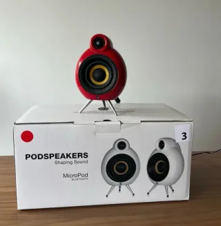 Altavoz Podspeakers Micropod Bluetooth en color rojo. Diseño moderno y compacto. - Acabado brillante. - Base con tres patas metálicas.
