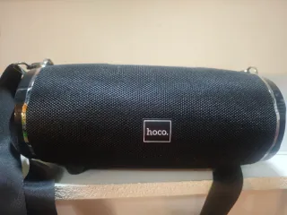 Altavoz portátil con un diseño cilíndrico y acabado en malla. - Acabado en color negro. - Logo de la marca hoco. en la parte frontal. - tiene entrada auxiliar y lector de tarjetas micro sd y pendrive buena calidad de sonido ( no es un JBL)