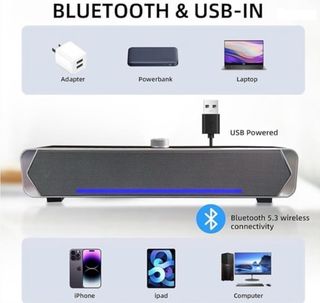 Altavoces de Ordenador para monitores de Escritorio, Altavoces Bluetooth para PC, Barra de Sonido Bluetooth 5.3 con Cable y alimentación USB, Barra de Sonido para PC El altavoz Bluetooth cuenta con un controlador de doble canal de 2 x 3 W de alta calidad con cono incorporado y dos altavoces para un sonido estéreo potente y exuberante. Incluso al volumen máximo, el rango de altitud es tan claro como el vidrio sin distorsión, mientras que la parte de graves es siempre suave. Disfruta de la emoción de la calidad nítida cuando usas la barra de sonido para PC.