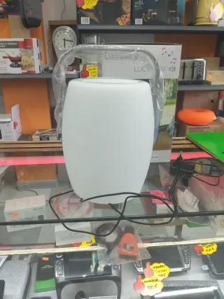 Lámpara portátil con altavoz Bluetooth. - Diseño moderno y elegante. - Asa para facilitar su transporte.