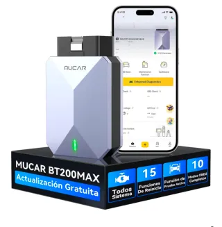 MUCAR BT200 MAX AI Accesibilidad Adaptador Bluetooth OBD2, Diagnosis Coche Multimarca Todos Sistema+15 Funciones de Reinicio, OBD2 Diagnosis para iOS y Android/Active Test-Actualización Gratuita Adaptador de diagnóstico para coches MUCAR BT200MAX. Permite la actualización gratuita. - 15 Funciones De Reinicio - 10 Modos OBD2 Completos - Función de Prueba Activa