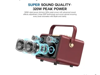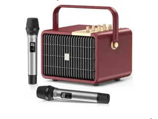 SUPNIU Máquina de Karaoke Portátil 320W Potencia Pico con Graves Profundos, Altavoz Bluetooth PA para Canto con 2 Micrófonos Inalámbricos UHF para Fiestas en Casa, Bodas y Eventos al Aire Libre. Sistema de karaoke con altavoz y dos micrófonos inalámbricos. - Diseño retro en color burdeos y detalles dorados. - Pantalla digital en los micrófonos. - Asa para facilitar su transporte.