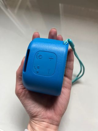 Usado un par de veces, está en perfecto estado. El altavoz portátil Sony es el modelo SRS-XB01 en color turquesa, con un diseño compacto y moderno. - Instrucciones incluidas. - Acabado mate. - Rejilla frontal texturizada. - Correa de transporte integrada.