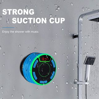Altavoz portátil con conexión Bluetooth, ideal para usar en la ducha o en exteriores. - Diseño esférico y compacto. - Botones de control integrados en la parte superior. - Ventosa para adherir a superficies lisas. -Batería Recargable