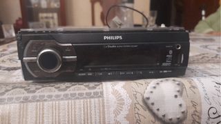 Radio para coche Philips con reproductor de CD y conectividad Bluetooth. - Panel frontal extraíble. - Puerto USB. - Entrada AUX. - Salida RCA. Le falta el botón de colgar las llamadas pero se puede colgar por el teléfono