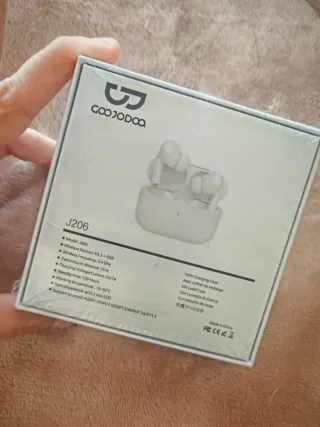 Auriculares inalámbricos GOOJODOQ modelo J206 en color blanco. - Versión Bluetooth: V5.3 + EDR - Frecuencia inalámbrica: 2.4 GHz - Distancia de transmisión: 15 m - Voltaje/Corriente de carga: 5V/1A - Tiempo en espera: 120 horas - Temperatura de trabajo: -10-50°C - Impedancia: 32Ω - Protocolos de soporte: A2DP1.3/HFP0.1S/HSP1.2/AVRCP1.6/D11.3 - Incluye estuche de carga