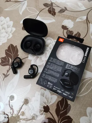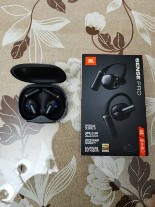 Los nuevos auriculares inalámbricos JBL Sense Pro en color negro. Diseño abierto para mayor comodidad sin intrusión auditiva. - Diseño de oído abierto (open-ear) - Compatible con sonido espacial - Llamadas nítidas 2.0 gracias a 4 micrófonos - Sensor de captación de voz - LDAC - Auracast - Resistencia al agua y sudor (IP54) - Personi-Fi 3.0 - Autonomía de hasta 8 horas sin pasar por la caja, considerando la caja, hasta 38 horas en total - Carga rápida: 10 minutos cargando en su caja dan hasta 4 horas de uso - Caja con wireless charging - Gancho de oreja ajustable - Hi-Res Audio Wireless - Drivers de 16.2mm - Bluetooth 6.0