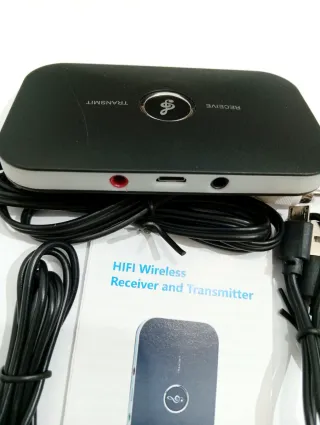 Dispositivo versátil para transmitir y recibir audio de forma inalámbrica. - Diseño compacto y elegante. - Indicadores LED para modo de recepción y transmisión. - Botón multifunción para control. - Incluye cables de conexión.