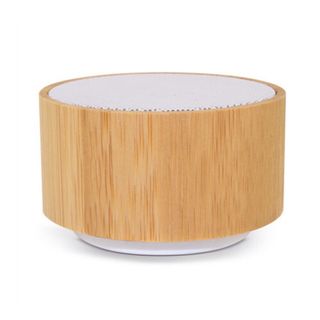Altavoz Bluetooth 5.0 realizado en bambú, con un diseño natural y elegante. - Material principal: bambú. - Forma: cilíndrica. - Parte superior de malla blanca. Recepción de llamadas Función radio Lector tarjeta Micro SD