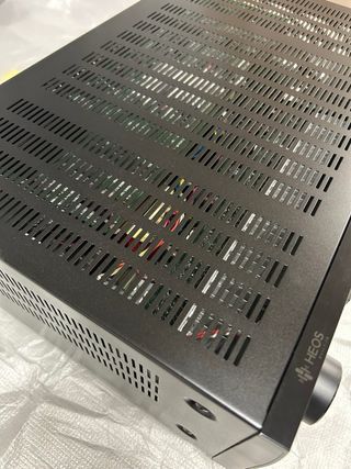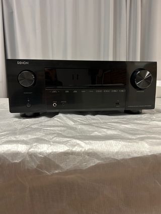 Receptor de audio y video Denon 7.2 en color negro. - Modelo AVR-X2700H. - Diseño elegante y moderno. Funciona a la perfección. En su caja original con todo lo que traía originariamente. Usado dentro de un mueble con disipador de calor, por lo que ha estado protegido del polvo. Entorno no fumador y muy bien cuidado. Menos por las pegatinas, creo que no se distinguiría de uno nuevo. DOLBY ATMOS Y DTS:X DOLBY HEIGHT VIRTUALIZATION Y DTS VIRTUAL:X 7 x 125 W A 6 Ω (2 CANALES) 7 x 95 W A 8 Ω (2 CANALES) RECEPTOR HEOS LINK, WI-FI Y BLUETOOTH INTERNOS